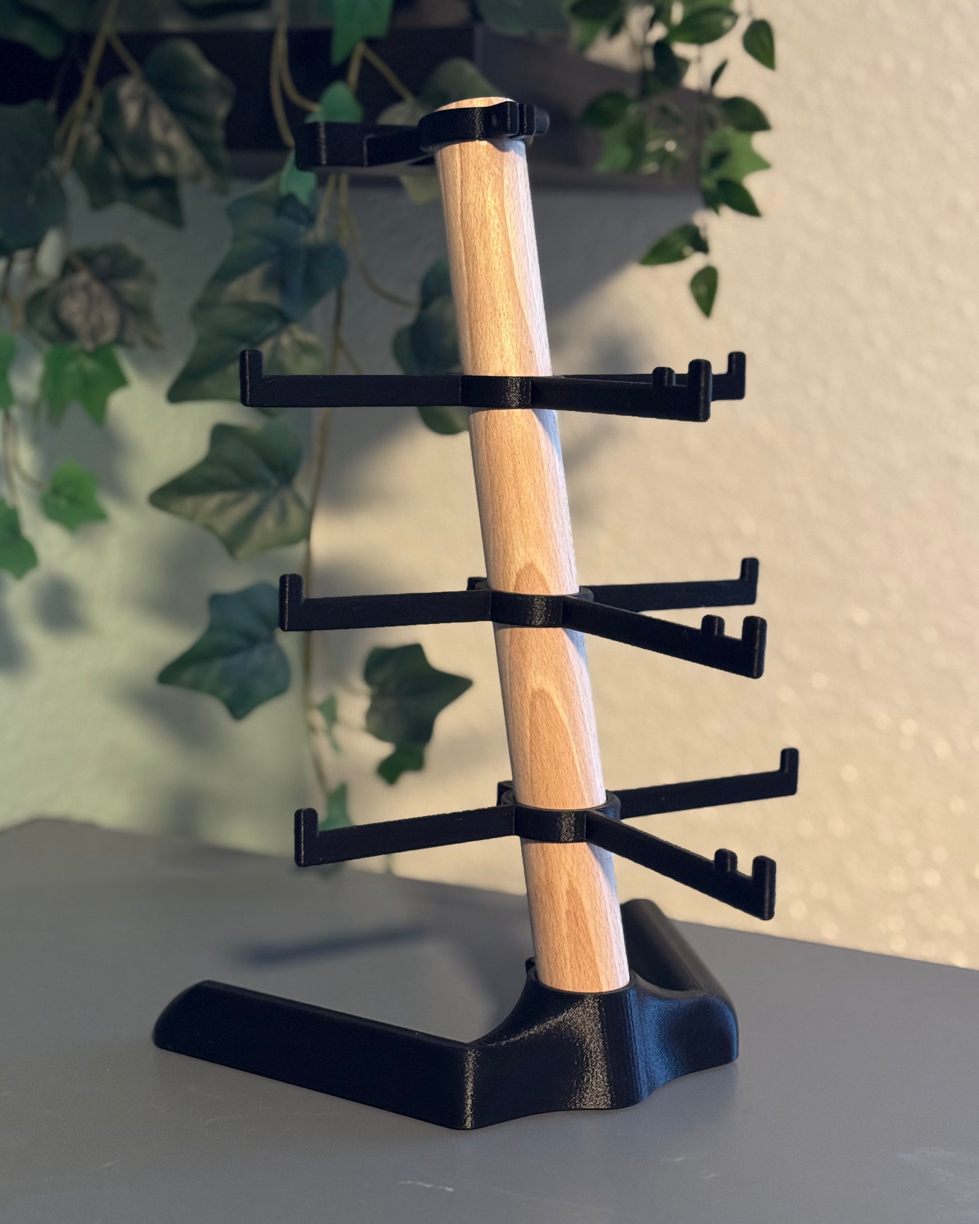 Durch sein schlankes, platzsparendes Design passt er ideal auf Schreibtisch, Sideboard oder in den Flur – perfekt für alle, die ihre Ausrüstung strukturiert und stilvoll präsentieren möchten.