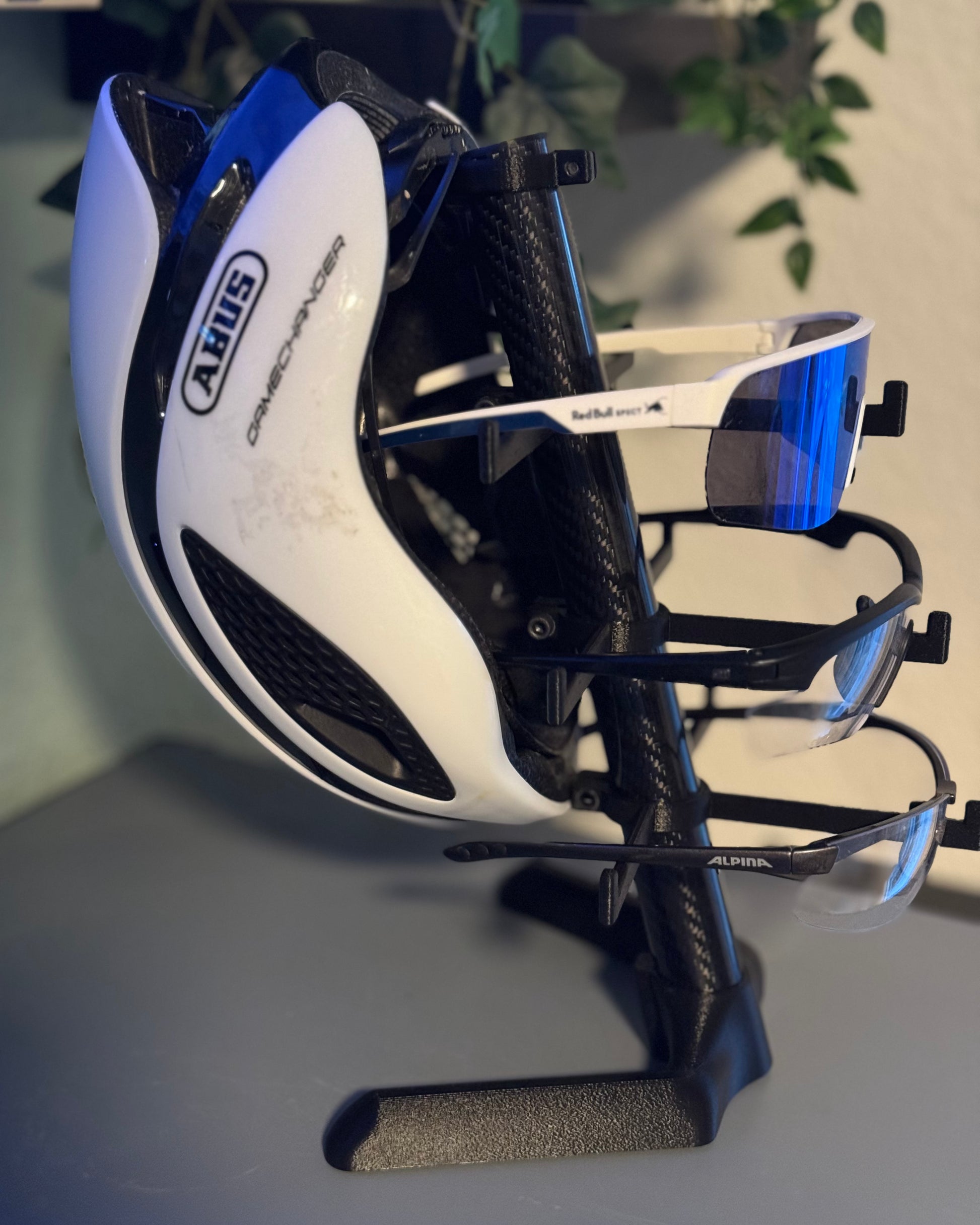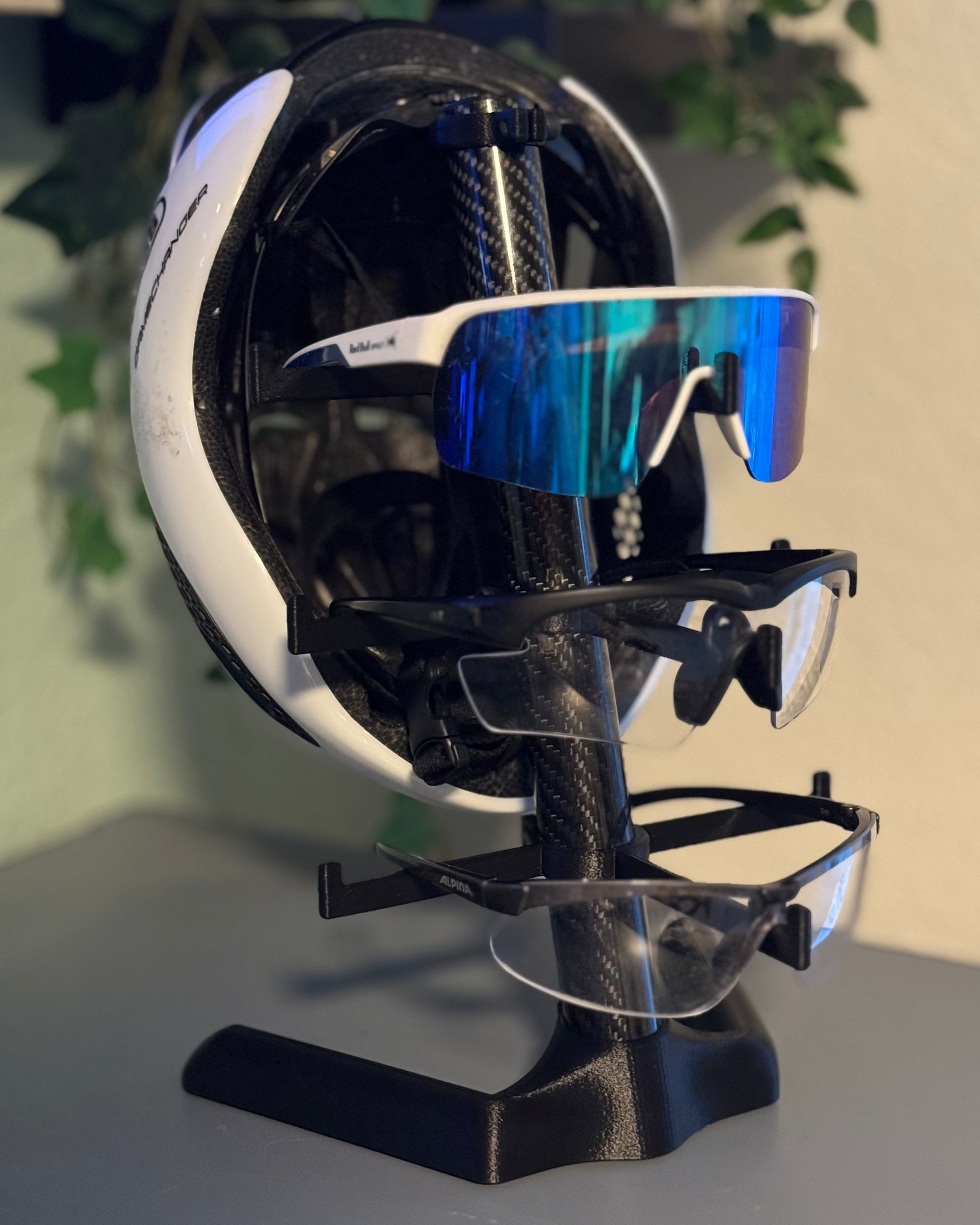 Stilvoll, kompakt und nachhaltig – der Desk Organizer V2 ist die perfekte Lösung für alle, die Helm und Fahrradbrillen ordentlich und griffbereit aufbewahren möchten. Gefertigt aus edlem Carbon in Hochglanzoptik vereint er hochwertiges Design mit durchdachter Funktionalität.